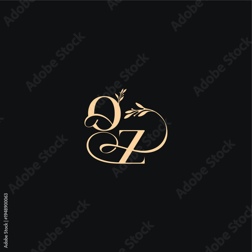 monogram elegant concept luxury feel with wavy line OZ organic leaves wedding logo letter