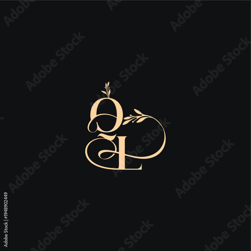 monogram elegant concept luxury feel with wavy line QL organic leaves wedding logo letter