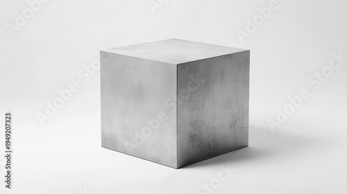 Monolithic Gray Concrete Cube Centered in Minimalist Studio Lighting With Soft Shadows and Subtle Texture on White Background