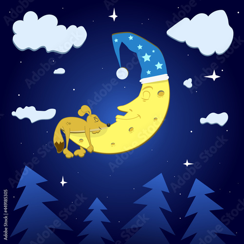 moon, star, sleep, dog, cloud, sky, glowing, bed, resting, beautiful, silhouette, comfortable, science, domestic, tranquil, relaxation, sleeping, canino, night, sphere, adorable, cosmos, portrait, satellite, bedchamber, shiny, cute, illuminated, breed, pillow, mysterious, friends, background, rest, phase, pet, round, relax, glow, home, dream, love, cloudscape, girl, sunset, happy, cloudy