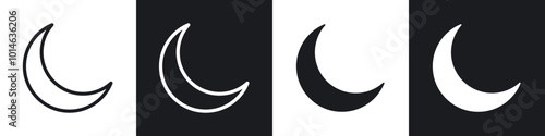 Moon icons set. filled and line illustration
