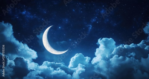 moon, sky, night, cloud, star, romantic, background, fantasy, moonlight, blue, starry, concept, crescent, scenic, mystery, landscape, tranquil, light, white, dream, romance, halloween, dark, black, cloudy, astronomy, nature, bright, half, midnight, planet, elegant, delicate, soft, grace, phase, shadow, beautiful, quiet, peace, silence, impression, poet, poetic, poetry, earth, beauty