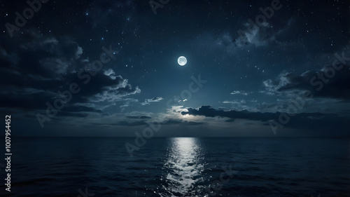moon, sky, night, cloud, sea, water, dark, ocean, cloud, full, moonlight, blue, nature, space, light, planet, landscape, fantasy, black, star, bright, sun, halloween, beach, evening