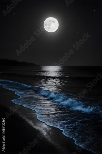 moon, night, sky, water, sea, ocean, full, dark, moonlight, blue, cloud, light, cloud, nature, landscape, space, planet, beach, horizon, fantasy, wave, black, abstract, full moon