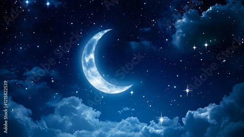moon, night, sky, star, cloud, crescent, blue, tranquil, serene, nature, celestial, astronomy, peaceful, bright, glowing, evening, landscape, heavenly, cosmos, quiet, atmosphere, beauty, illumination, starry, dark, summer, wonder, magic, fantasy, dream, soft, scenic, huge, horizon, calm, inspiration, romantic, hugs, peacefulness, night time, universe, twinkle, light, deep, visual, radiance, charme