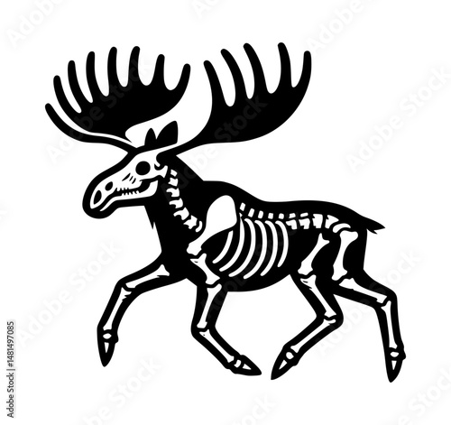 moose, bone, silhouette, icon, logotype, vector, black, white, background, animal, skeleton, graphic, design, art, illustration, emblem, minimal, modern, creative, outline, avatar, brand, identity, template, clip art, simple, decor, print, signs, wildlife, forest, nature