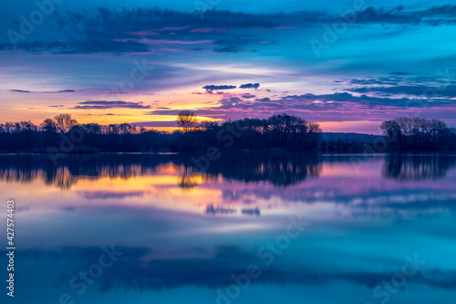 Morgendämmerung an einem Baggersee in Bayern