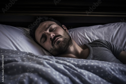 Morning Bliss: Happy Man Resting and Waking Up in His Bedchamber at Home