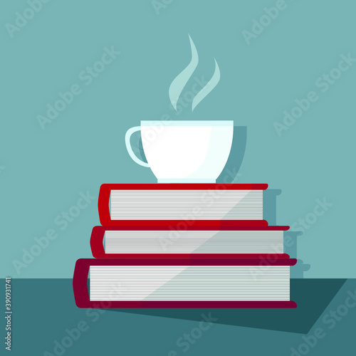 hot drink, cup, drink, hot, tea, white, espresso, breakfast, book, illustration, aroma, table, morning, book, cappuccino, food, red
