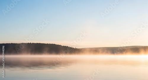 lake, mist, sunrise, forest, nature, water, fog, sky, horizon, tranquil, calm, serenity, morning, dawn, landscape, scenic, reflective, peaceful, atmospheric, wilderness, beauty, golden hour, silhouette, tree, environmental, wellness, background, travel, relaxation