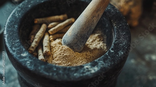 mortar, pestle, grinding, root, herbal, powder, organic, ayurveda, remedy, natural, holistic, wellness, kitchen, traditional, medicine, supplement, alternative, fresh, preparation, health