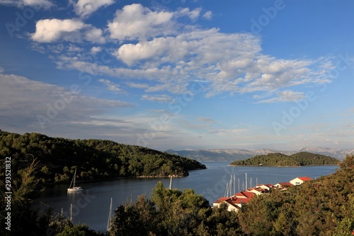port, adriatic, enchanting, sheltered, charming, bay, sea, landscape, water, sky, nature, blue, panorama, mountain, island, view, tour tourism, travel, summer, mountain, coast, cloud, green, europa, coastline, picturesque, boat, house, sailboat, wood, pine, forest, resort, vacation, paradise, croat, harbor, marina, booklet, destination, holiday, sailing