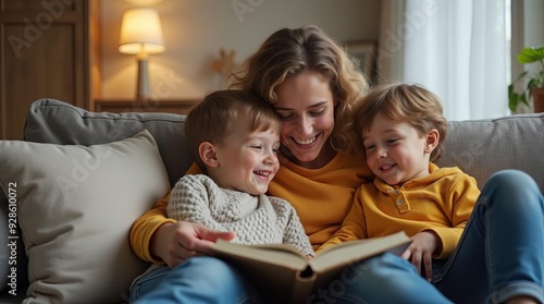 reading, family, mother, children, book, bonding, home, cosy, parenting, education, togetherness, literacy, childhood, learning, love, comfort, nurturing, storytelling, affection, living room, happiness, leisure, attention, human relationships, care, listening, imagination, sofa, smiling