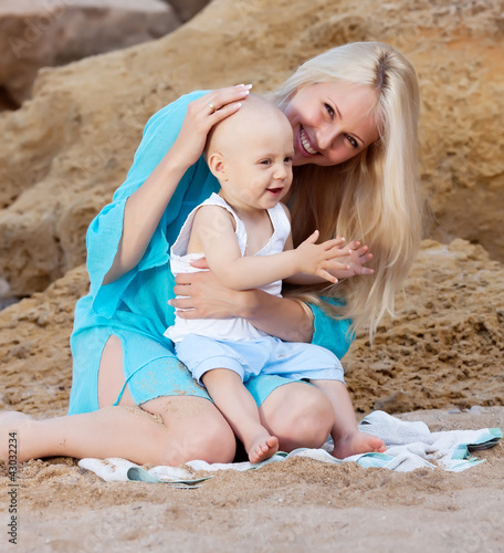 Mother with her baby on the beach