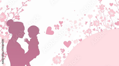 Mother's Day celebration card design with a mother silhouette holding a child and heart symbol. with the text "HAPPY MOTHER'S DAY".