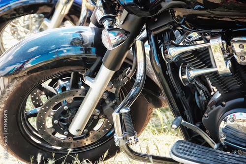 motorcycle bike, tuning details. Motorcycle, metal and chrome parts, beautiful background for poster, flyer,