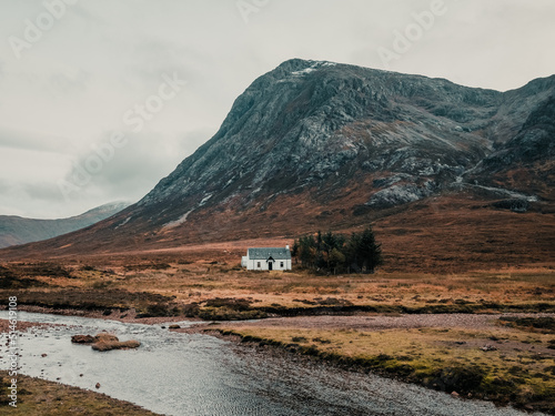 mountain and cottage, Glencoe, Buachaille Etive Mor, Scotland
