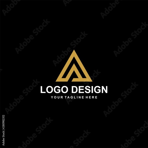 Mountain gold logo design vector. Adventure triangle abstract logo icon illustration.