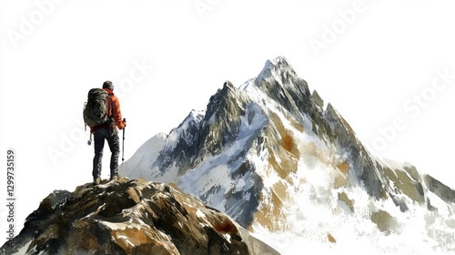 Mountain Hiker Isolated Scene with Mountain with White