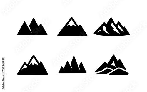 silhouette, simple, mountain, icon, black, nature, theme, design, minimal, symbol, peak, adventure, graphic, shape, hiking, landscape, illustration, scenery, set, rocky, emblem, minimalist, alpine, wilderness, crest, travel, expedition, summit, height, jagged, abstract