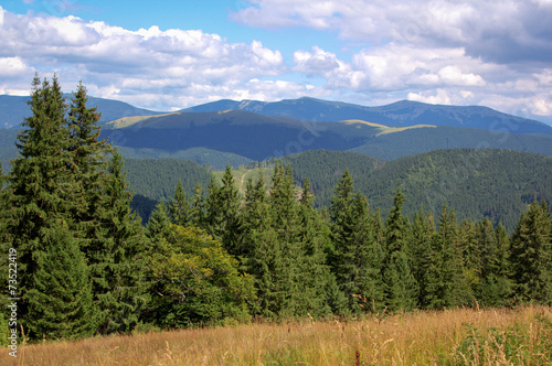 mountain, nature, landscape, majestic, tour tourism, scenery, scenic, mountain, cloud, ukraine, beautiful, beauty, calm, carpathians, meadow, sky, heaven, colours, day, summer, evergreen, forest, wood, tree, spruce, horizontal
