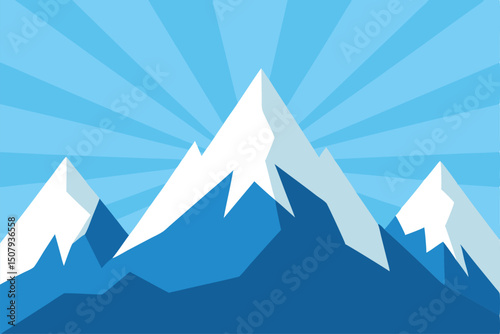 mountain, landscape, vector, snow, nature, illustration, mountain, winter, sky, peak, ice, travel, cold, forest, cartoon, icon, sun, design, rock, alps, hill, scene, sea, range, water