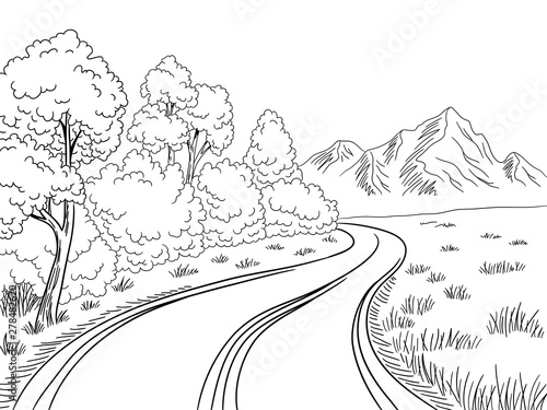 Mountain road graphic black white landscape sketch illustration vector