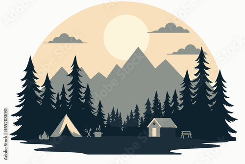 camping, mountain, sunrise, forest, tent, cabin, nature, tree, adventure, hiking, wilderness, landscape, travel, morning, pine tree, mountain chain, get-away, campfire, bar-b-q, cooking, family time, relaxing, scenery, natural beauty, fresh air, exploration, serene, peaceful, campground, scenic view, mountain view, rustic, holiday, ecotourism, morning light