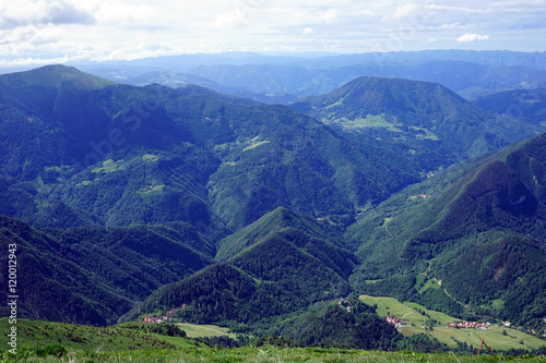 view, mount, mountain, tree, forest, vale, green, grass, village, slovenia, alps