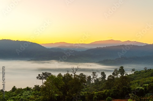 Mountain views and beautiful Mist of Phu Langka National Park, Thailand
