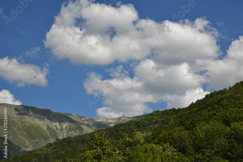 landscape, mountain, sky, nature, cloud, cloud, green, mountain, forest, blue, hill, summer, grass, tree, view, vale, panorama, countryside, travel, beautiful, tree, scenic, outdoors, hill, day, italy, cumulus, white