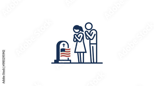 us, loss, flag, icon, grief, grave, death, couple, prayer, symbol, sorrowful, veteran, soldier, memorial, mourning, cemetery, honoring, line art, gravestone, patriotism, remembrance, bereavement, american flag, us