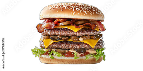 transparent, burger, food, cheeseburger, beef, bacon, lettuce, mushroom, epicure, fast food, meal, sandwich, grilled, studio shot, culinary, snack, lunch, dinner, delicious, photo, white background, crispy, juicy, food photography, fresh, visual, eatery, nourishment, cooking, american, bun, homemade, lifestyle, receipe, clean, gourmet food, table, indulgent, classic, savoury