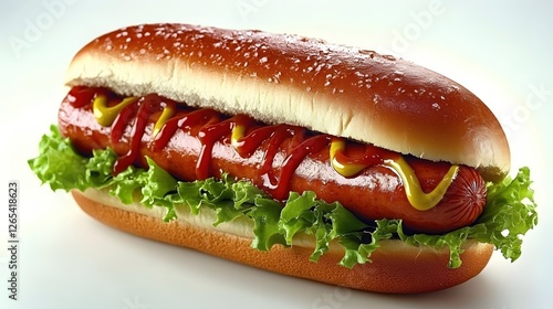 Mouthwatering Hotdog with Ketchup Mustard and Fresh Lettuce on a Soft Bun Delicious Meal