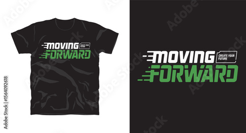 Move forward motivational typography t-shirt design, inspirational quote, motivational slogan for fitness, life, success, positive mindset, casual apparel, t-shirt design