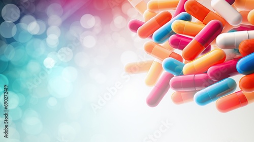 Multicolor pills and capsule for pharmaceutical, medical, health care and science concept. Generative AI