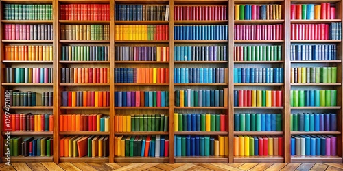 Multi-Colored Bookshelf Adorned with Rainbow of Books