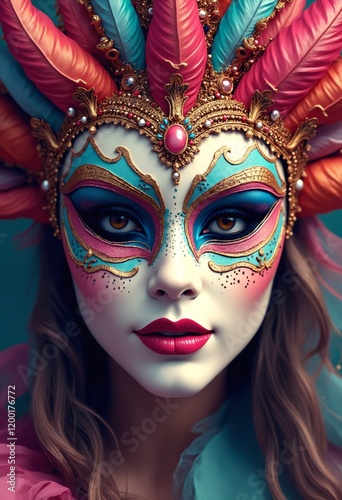 many-coloured, carnival, mask, copy space, illustration, colourful, colours, masquerade, party, venetian, venice, costume, festival, art, celebration, decoration, feather, theatre, disguise, holiday