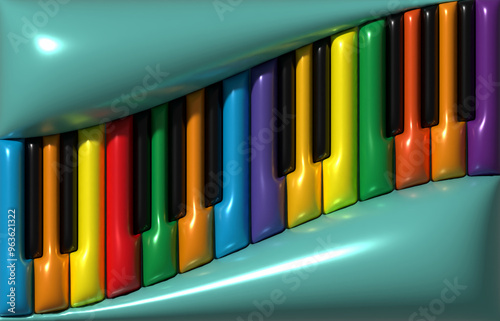 piano, music, octave, rainbow, green, instrument, key, keyboard, musical, painting, pink, red, illustration, rendering, black, blue, classic, colourful, concert, equipment