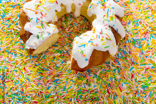 multi-colored sweet topping and Easter cake, beautiful easter photo