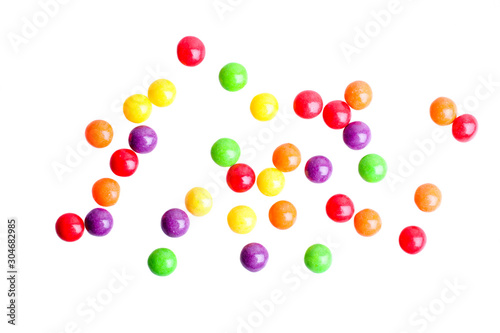 candy, dragee, food, sweet, glaze, chocolate, closeup, birthday, dessert, bright, childhood, fruit, group, holiday, mixed, many-coloured, many, red, yellow, orange, green, violet, isolated, white, background, nobody