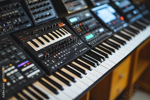 synthesizer, keyboard, key, music, studio, instrument, technology, electronic, equipment, production, mixing, sound, audio, control, knob, buttons, panel, interface, workstation, digital, analog, recording, composition, arrangement, performance, creation, melody, harmony, rythm