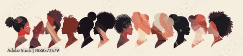 Multiracial communication group of women and girls with silhouette profiles. Multicultural female social networking community. Talk and share information. Make friends. Speak your mind.