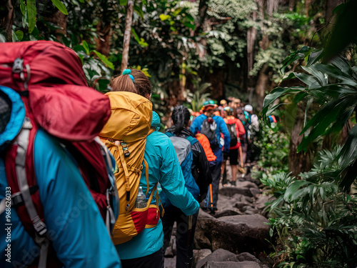 multiracial, group, hiking, tropical, rainforest, adventure, nature, exploration, diversity, trek, outdoors, foliage, trail, journey, friends, green, environment, teamwork, wildlife, expedition, exotic, oneness, exercise, travel, lush, vibrant, ecosystem, togetherness, tree, path, bonding, flora, fauna, forest, activity, health, scenic, beauty, discovery, multicultural, fun, energetic, perspiring, landscape, life events