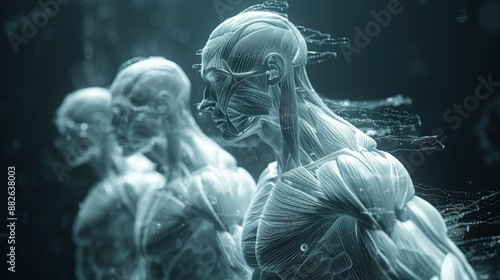 illustration, anatomy, muscle, biology, bone, color image, exercising, human, medicals, medicine, no people, science, x-ray, health, body, isolated, blue, athlete, futuristic, horizontal, muscular, skeleton, three-dimensional, vertical