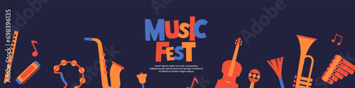 Music fest web banner. Music horizontal background.