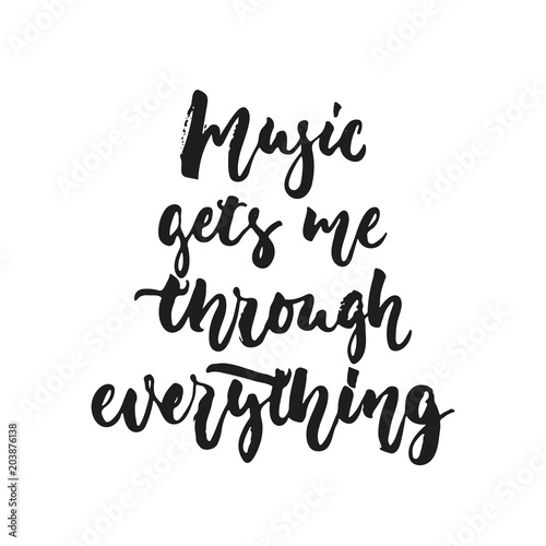 Music gets me through everything - hand drawn lettering quote isolated on the white background. Fun brush ink vector illustration for banners, greeting card, poster design, photo overlays.