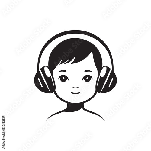 earphones, listening, music, audio, sound, children, earphones, music lover, young person, tune, beat, track, entertainment, lifestyle, happiness, serenity, cheerful, relaxed, happy, smiling, fun, joy, peace, calm, comfort, leisure, enjoyment, relaxation, feeling, expression, positive, style, portrait, black, white, art, silhouette, illustration, drawing, graphic, design, icon