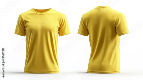 t-shirt, yellow, clothing, design, blank, fashion, apparel, casual attire, garment, style, cotton, shirt, plain, textile, fabric, menswear, minimal, modern, outfit, isolated, clean, template, graphic, display, model, colours, bright, mustard, summer, trendy, wear, creative, light, smooth, soft, retail, uniform, unisex, front, back, empty, stylish, simple, sport, layout, branding