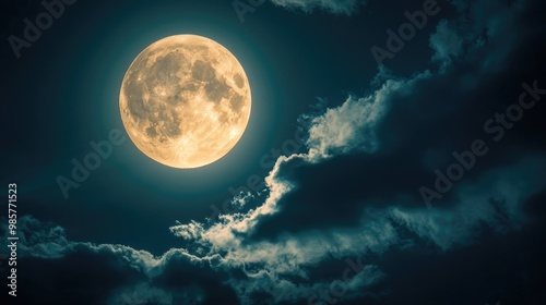 Mysterious full moon in a dark sky with clouds